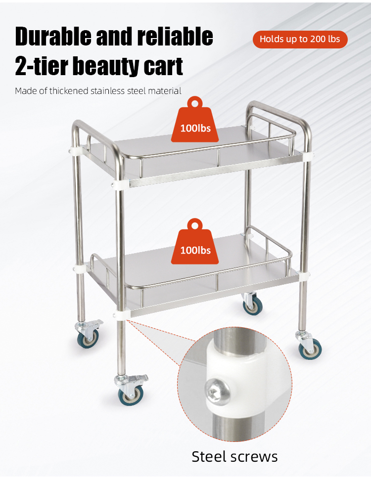 Holds up to 200 lbs: With a weight capacity of up to 200 lbs, this trolley can safely transport medical supplies and equipment.